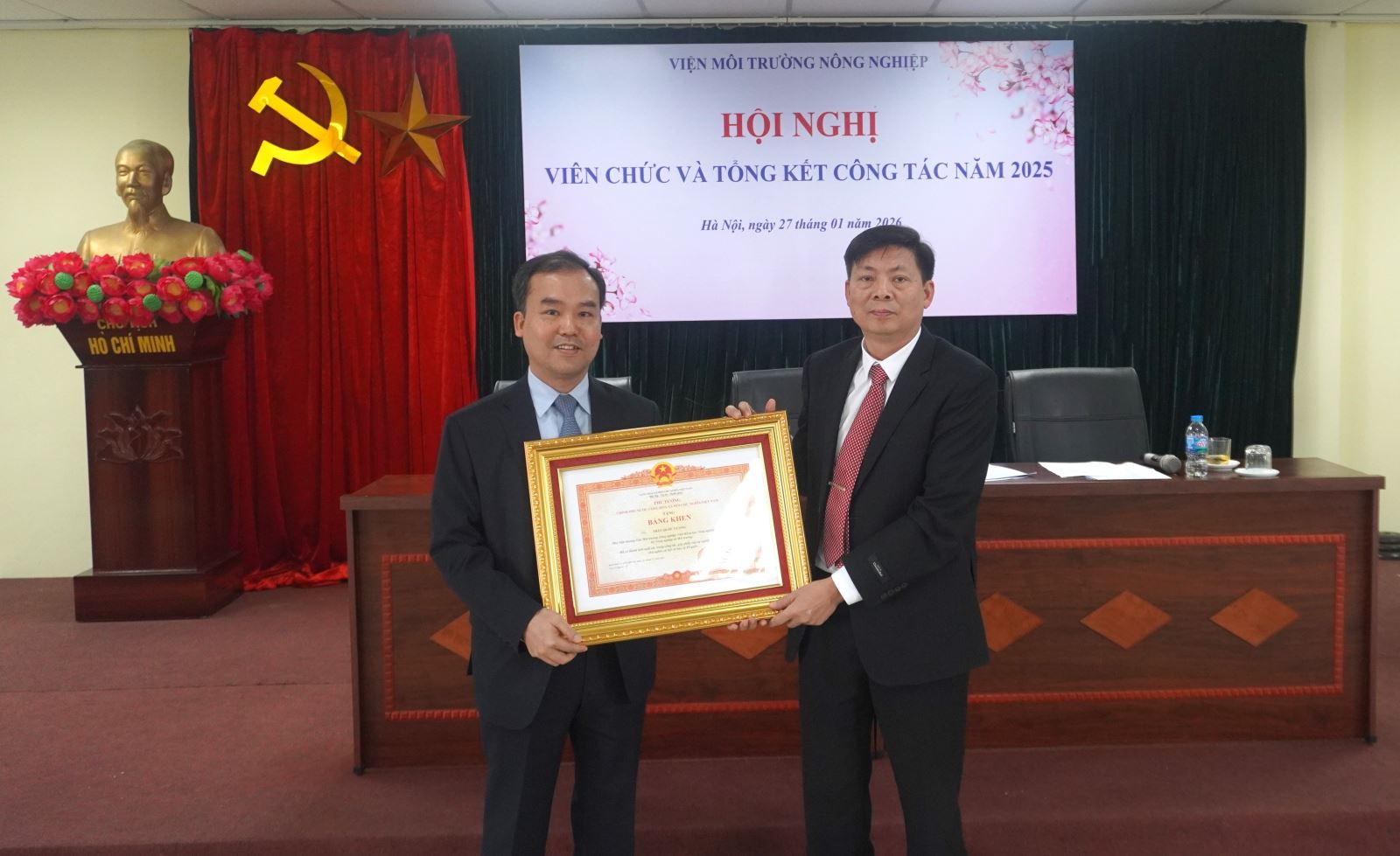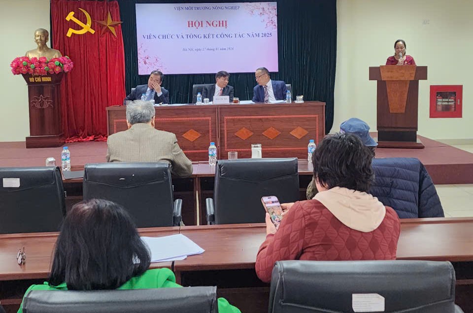 Sáng ngày 27/01/2026, Viện Môi trường Nông nghiệp đã long trọng tổ chức Hội nghị viên chức, Tổng kết công tác năm 2025 và Phương hướng nhiệm vụ năm 2026, nhằm đánh giá kết quả thực hiện nhiệm vụ công tác, kiểm điểm trách nhiệm của người đứng đầu, tập thể lãnh đạo Viện về việc thực hiện nghị quyết hội nghị viên chức năm 2025 và xây dựng phương hướng, nhiệm vụ, giải pháp công tác năm 2026.