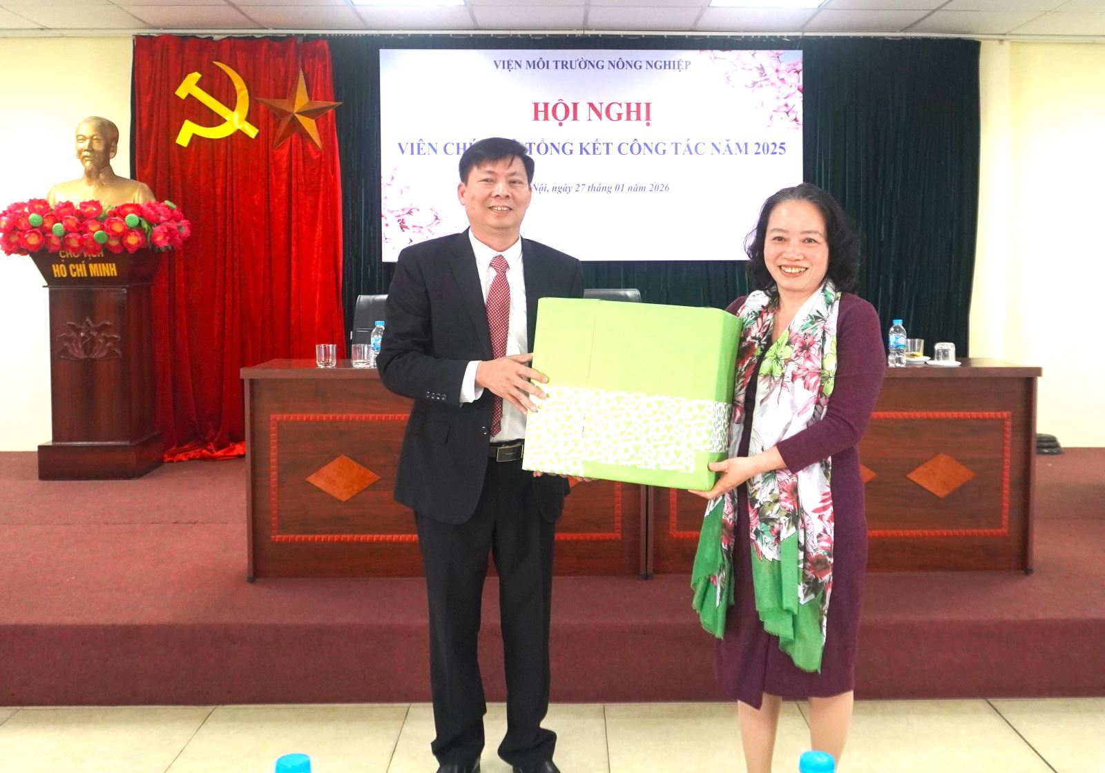 Trong khuôn khổ Hội nghị, Viện đã tổ chức trao quà chia tay đối với TS. Bùi Thị Lan Hương, Nghiên cứu viên chính, Bộ môn Môi trường Nông thôn về nghỉ hưởng chế độ hưu trí theo Nghị định số 154/2025/NĐ-CP từ ngày 01/01/2026; đồng thời trao quà Tết cho các cán bộ hưu trí của Viện. Hoạt động thể hiện sự quan tâm, trân trọng của tập thể lãnh đạo, viên chức và người lao động đối với các thế hệ cán bộ đã có nhiều đóng góp cho sự phát triển của Viện.