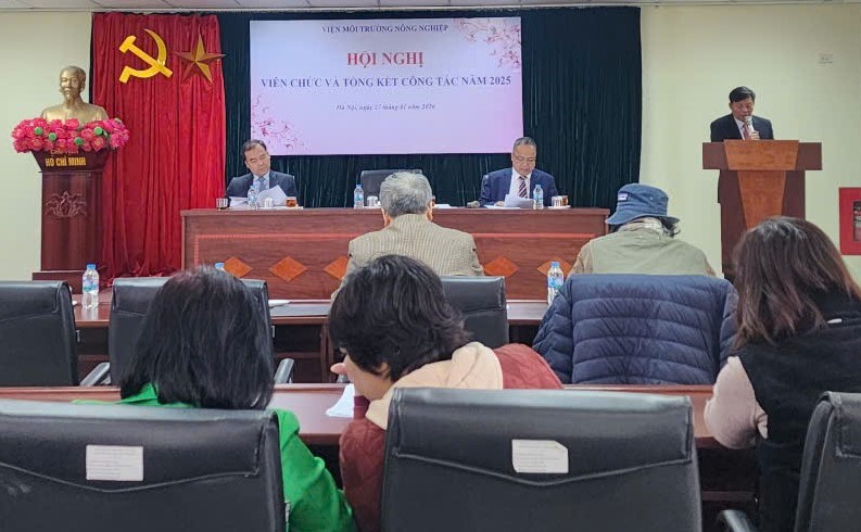 Sáng ngày 27/01/2026, Viện Môi trường Nông nghiệp đã long trọng tổ chức Hội nghị viên chức, Tổng kết công tác năm 2025 và Phương hướng nhiệm vụ năm 2026, nhằm đánh giá kết quả thực hiện nhiệm vụ công tác, kiểm điểm trách nhiệm của người đứng đầu, tập thể lãnh đạo Viện về việc thực hiện nghị quyết hội nghị viên chức năm 2025 và xây dựng phương hướng, nhiệm vụ, giải pháp công tác năm 2026.